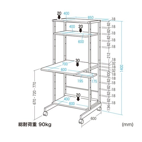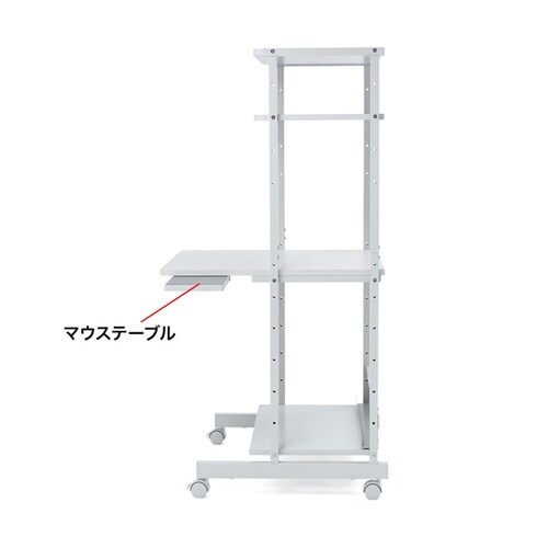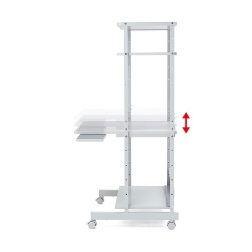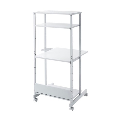 省スペースに必要機器が設置できます。木製天板は環境に優しい再生材を使用しており、スチール製よりも優しい手触りです。メイン天板の位置を3段階で変更することができます。 |