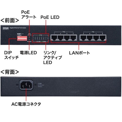 ギガビット、PoE給電対応の8ポートスイッチングハブです。IEEE 802.3at PoE+に対応しており、1ポート最大30Wの給電が可能です。 |