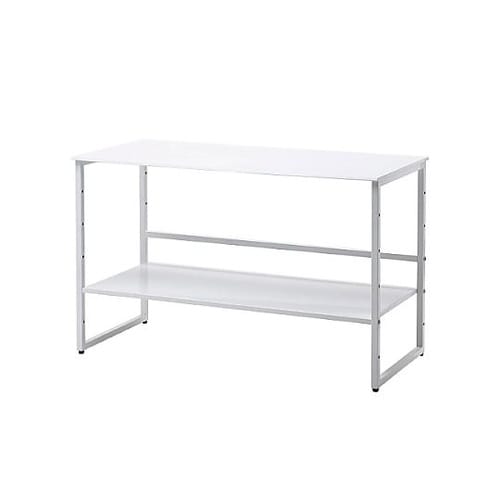 ワイドモニターも設置出来るW980タイプ天板部は耐荷重50Kgでレーザープリンタも設置出来ます。中棚に液晶ディスプレイを置く事で目線を上げ正しい姿勢で作業が出来ます。 |