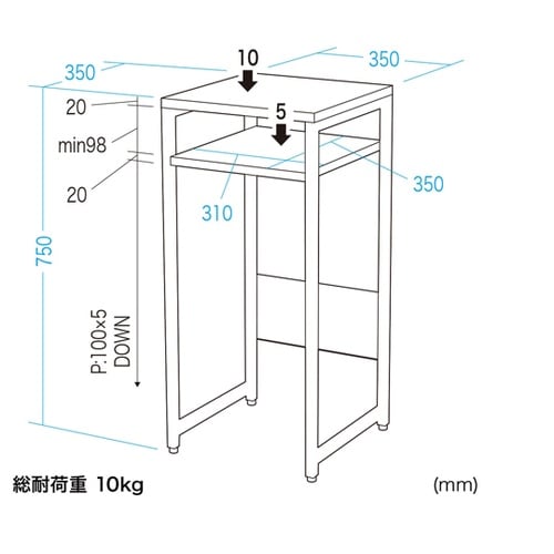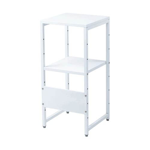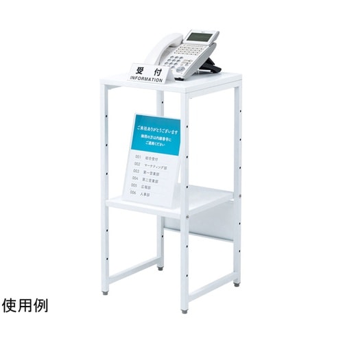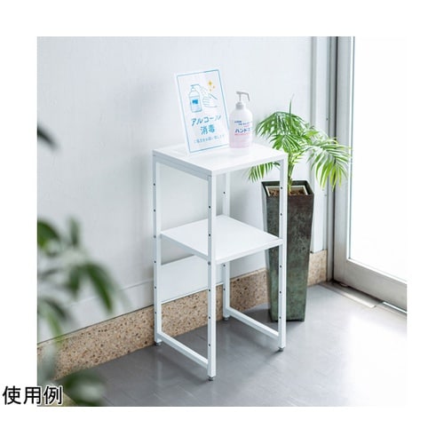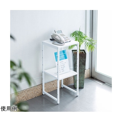 W350×D350mmの場所を取らないマルチスタンドです。受付の電話台や消毒台、プロジェクター台としても使いやすいサイズです。中棚が付属し、置くものに合わせて高さ変更が可能です。 |