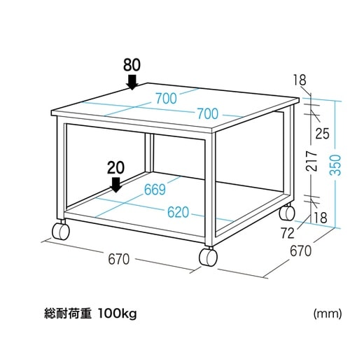 大型A3レーザープリンター、カラーレーザープリンター用として最適なプリンタースタンドです。中棚には用紙などを収納できます。 |