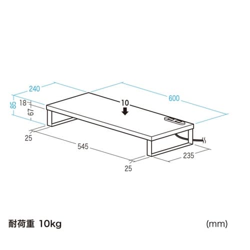 モニター下の空間を収納スペースにできるモニター台です。モニターの高さを上げることで目線を高くして作業時の姿勢の改善に役立ちます。2P 2個口のコンセント付きで電源の確保に便利です。 |