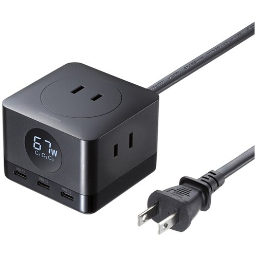 USB急速充電機能付きタップGaN PD67W TAP−B111C3BK 1個