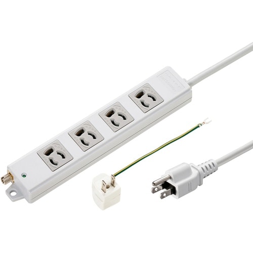 3P抜け止めの4個口仕様電源タップです。通電が確認できるランプ付きです。裏面にマグネットが付いていますので、スチールのデスクなどに仮固定することができます。アース端子付きです。 |