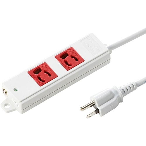 病院、工場、オフィスの緊急用電源として使われる赤色の電源タップです。無鉛はんだを使用した環境対策商品です。3P抜け止め、トラッキング火災予防機能付き3Pプラグ仕様の2個口タップです。 |