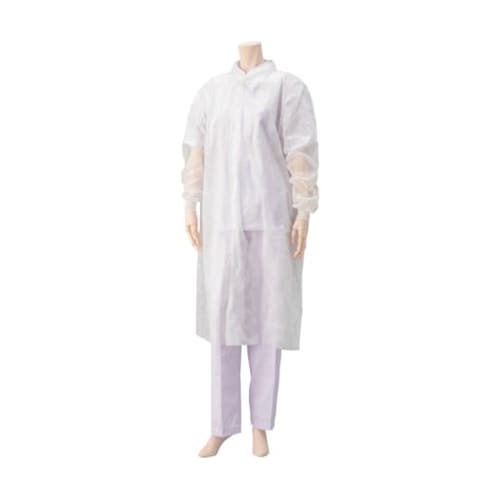 袖口が絞っているので手首にピッタリフィットし、作業性に優れます。男女兼用の簡易コートなので、工場見学などに適しています。食品工場、医療関係、製造工場。 |