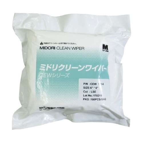 長繊維を使用し、拭き取り、吸水性に優れています。不織布と比べて拭き取り面からの発塵が少ないです。クリーンパック「クラス100」で洗浄し、パッキングされています。クリーンルームでの拭き取り作業。 |