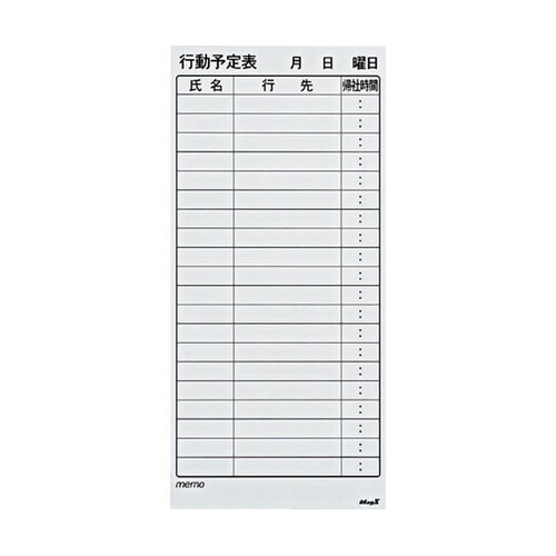 スチール書庫の扉にピッタリのサイズです。裏面全面マグネットシートなので、着脱が簡単です。オフィスの壁面を有効活用できます。20名分書き込みできます。 |