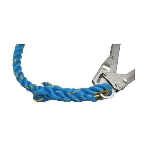 片側大口径(50mm)フック付の青色ニューテトロンロープ16mmΦ(3ツ打ち)仕様の垂直移動用親綱です。ロープエンドはテープ止め処理で水平親綱として使用の際、緊張器にロープを挿入しやすい仕様です。 |
