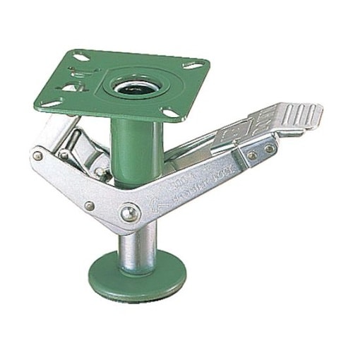 全圧約392N(約40kgf)の内蔵スプリングの働きによりベースが約5mm伸縮しますので、凹みのある床面に対応できます。最大積載質量を越えないように積載してください。キャスター付台車のストッパーです。