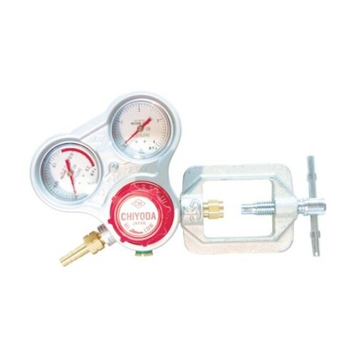 突起部が少ないコンパクトボディーです。逆火防止器内蔵型、ゲージプロテクター付です。新JIS規格準拠品です。アセチレンガス用調整器。 |