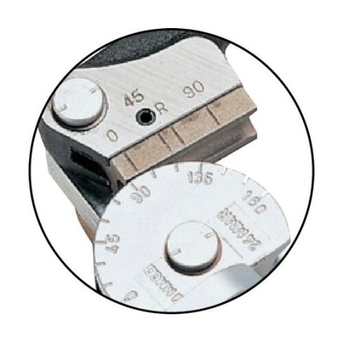 余分な力を省くためテコ採用によるパワーを最大限に生かします。レバーは180°の曲げにも手がぶつからないように設計されています。薄肉ステンレスチューブ、軟・硬銅管、真鍮、鉄管、アルミ管の曲げ加工に。 |