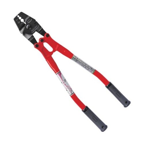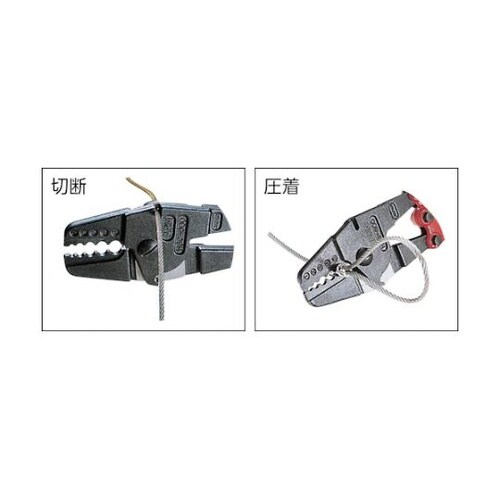 1丁で圧着と切断の2役が可能です。現場で台付ワイヤが製作できます。スリーブの圧着作業に。 |