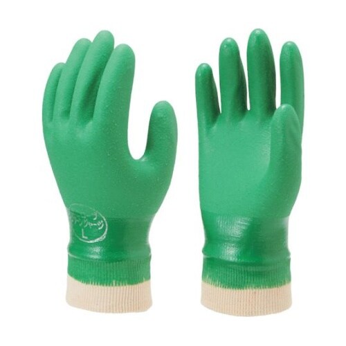 塩化ビニール手袋 まとめ買い 簡易包装グリーンジャージ 10双入 Lサイズ NO600−L10P 1袋