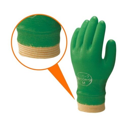 裾口ジャージ加工により、手首部分もサポートします。特殊樹脂をコーティングしているため、高いすべり止め効果を発揮します。裏布には抗菌防臭加工を施し、汗臭くなりにくくなっています。運輸・物流業。 |
