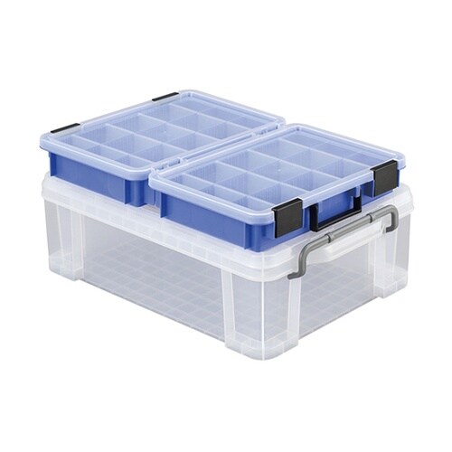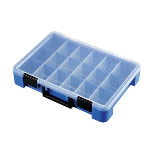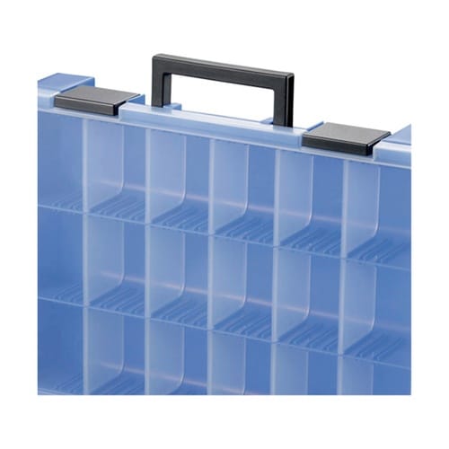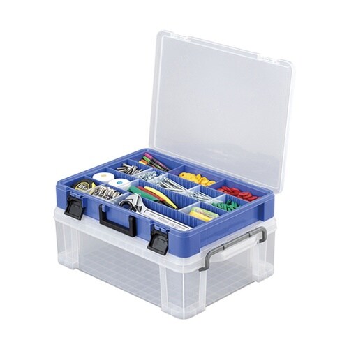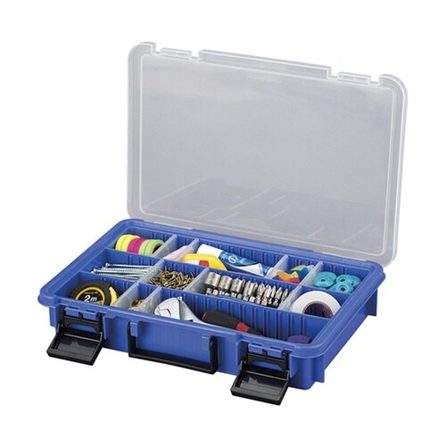 用途に合わせて移動できる仕切り付きです。細かいネジや部品などが取り出しやすい底部角のカーブ形状です。移動、持ち運びに便利なハンドル付きです。 |