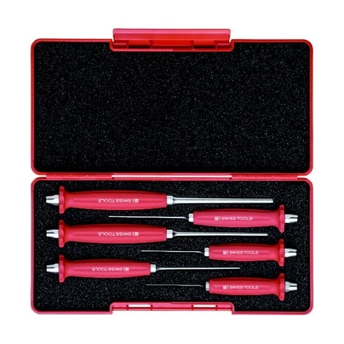 グリップ付きで衝撃と振動を抑えます。軸長が長く、奥まった箇所での打ち込みに適しています。 |