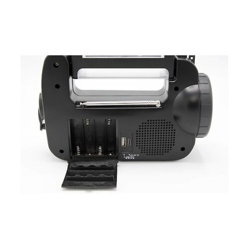 USB、ソーラー充電、手回し充電、乾電池(単3×4本(別売))で充電できます。 |