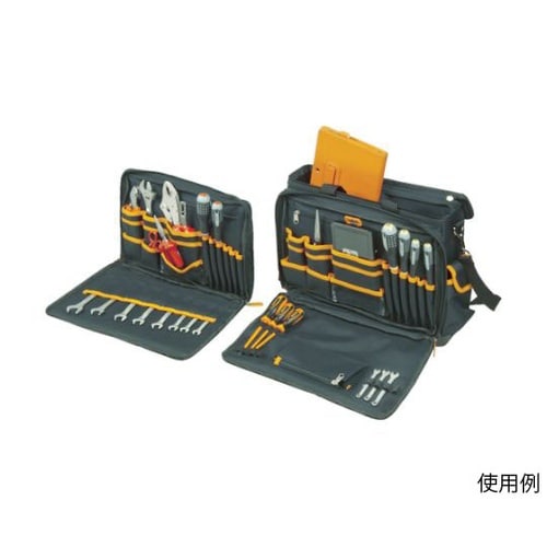 内側の大小ポケットは工具を納められるようになっています。取り外し可能なコンパートメント付です。大きなパット入り、ノートパソコン用仕切りがあります。 |