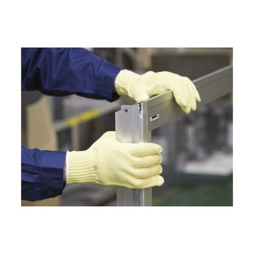 ケブラーR繊維を使用しており、耐切創性、耐摩耗性に優れています。素材機能として、耐熱性、難燃性(自己消火性)などの優れた熱特性をもっています。 |