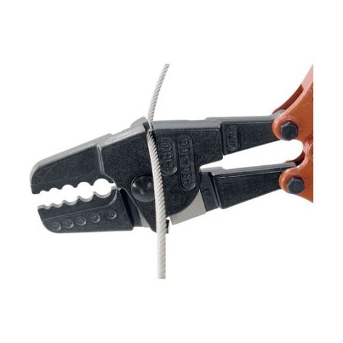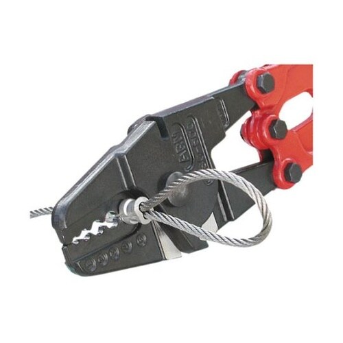 1丁で圧着と切断の2役が可能です。現場で台付ワイヤが製作できます。スリーブの圧着作業に。 |