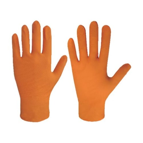 油に強いニトリルゴム製で、丈夫で引っ張りに対しても強い薄手グローブです。オレンジは汚れが分かりやすく用途に合わせてご使用頂けます。ダイヤモンドグリップ加工でグリップ力があり、すべりにくいです。 |