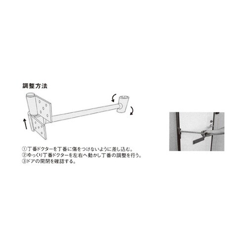 丁番ドクターをドア丁番に差し込み左右に動かすことでドアの歪み、軋みを調整することができます。ドア丁番の調整用に。 |