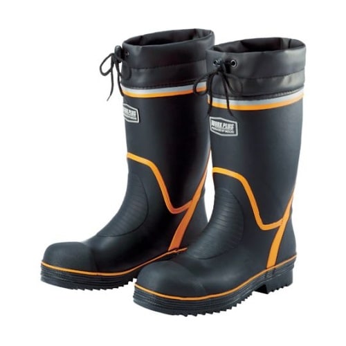 鋭利な物から足裏を守るステンレス製の踏抜き防止板を内装しました。軽量でサビにも強いワイド樹脂先芯搭載です。筒部に反射テープが付いています。 |