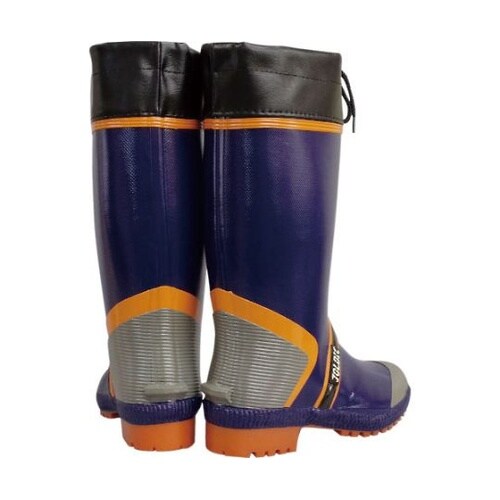 ラバー・ナイロンメッシュ・ラバー+吸汗メリヤスにした強度に優れた作業用カラーブーツです。履き口ソフト合皮カバーにより異物の侵入を防ぎます。裏面は滑りにくい彫刻構造です。