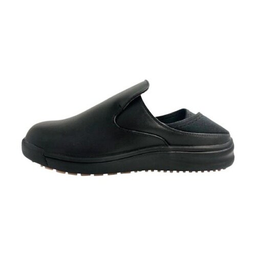 油に強く、変形を起こしにくい底を採用しています。かかとが踏めるキックバック式です。優れた軽量・幅広・クッション性があります。ネームプレート付きです。インソールは取り外し可能です。