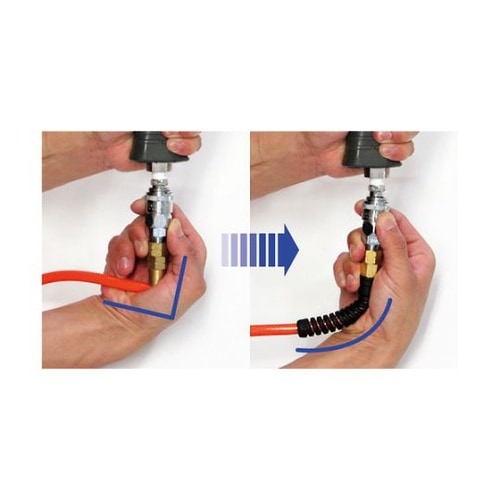 簡単ホース交換機構(継手仕様)です。必要に応じた首振り機能付きです。空圧工具使用時のエア供給用です。さまざまな機器への組み込みも容易です。狭い場所や作業台まわりに適しています。 |