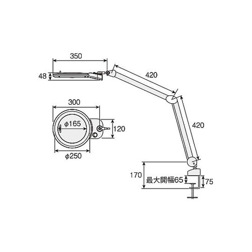 機能と価格のバランスがとれたアームルーペワールドワイド仕様のLEDタイプ照明には省エネ・長寿命のLEDを採用。レンズは165mmφの大口径ホワイトレンズ仕様。 |
