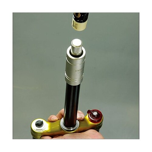 フォークコラムにスターファングルナットを挿入する専用工具。センタリングガイドにより正確に歪みなくセッティングできます。 |
