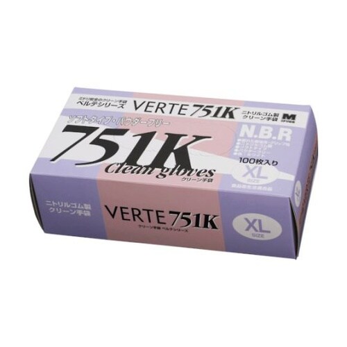 ニトリル使い捨て手袋 ベルテ751K ホワイト 粉なし 100枚入 XLサイズ VERTE−751K−XL 1箱
