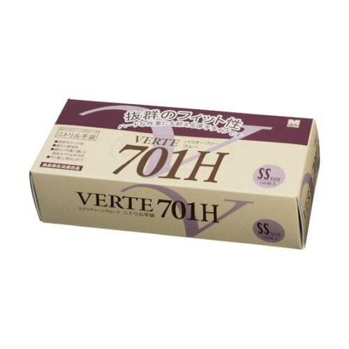 ニトリル手袋 ベルテ701H パウダーフリー 厚手(100枚入) SSサイズ VERTE−701H−SS 1箱