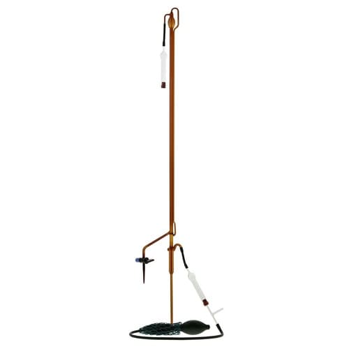 自動ビュレットは、ビュレットに比べ薬液の補充が2連球ゴムスプレーの操作で安全かつ正確に行えます。ゼロ(目盛)が自動的に調整できる構造となっており、ビュレットのゼロ合わせのコック操作の必要がありません。 |