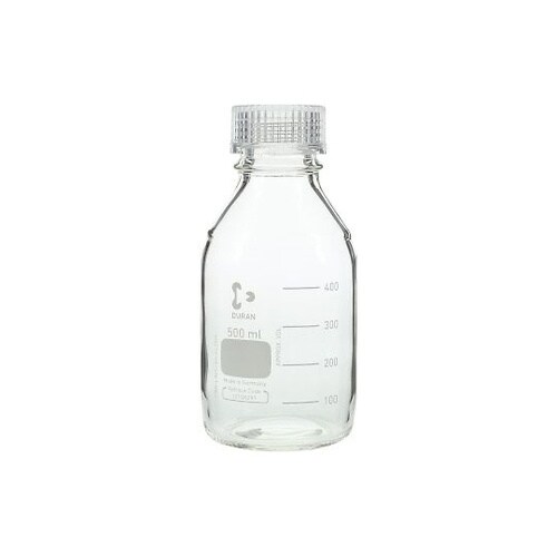 SCHOTT ねじ口瓶丸型(デュラン(R)) 透明キャップ付 500mL 10本 017200−5003A 1ケース A09J-1203