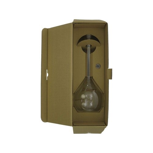 目盛のある首部分の径が細いため、同容量のメスシリンダーより目盛の精度が高いです。一定の試薬濃度を正確に調整する時に使用されます。 |