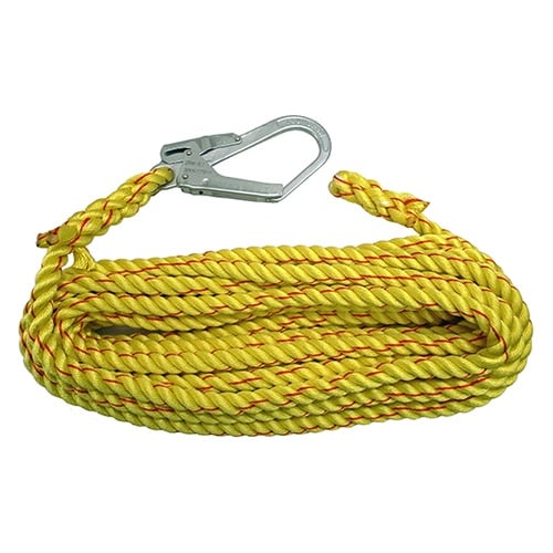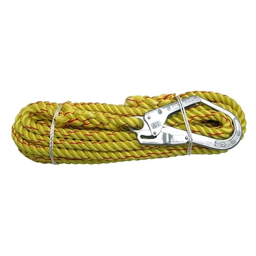 ロープカラー:黄(赤線入り) | ロープ材質:ニューテトロン(ポリエステル)、中芯部分/PPダンライン白 | ロープ切断荷重(kN):約32(約325…
