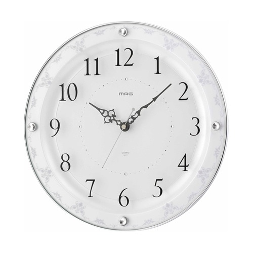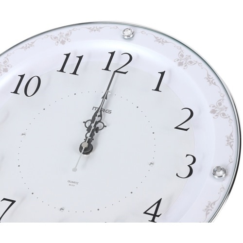 ラインストーンが上品な花柄デザインの電波時計。夜間(22時ー6時)は自動で秒針停止機能付きで秒針のカチコチ音の気になりません。 |