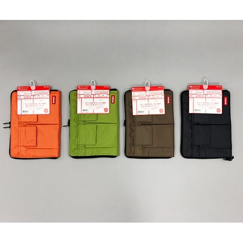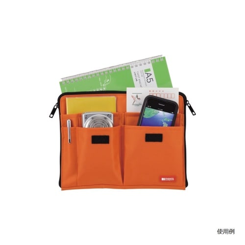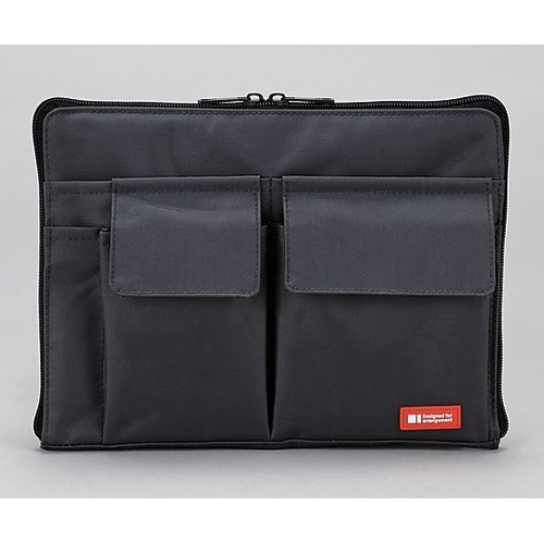 カバンの中でかさ張らない薄型タイプです。マチ付きポケットは落下防止用のフタ付きで、使用しない時はポケット内に収納できます。