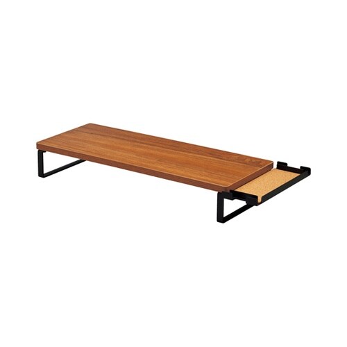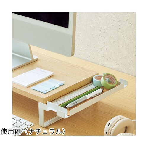 文具小物やガジェットが置けるサイドトレー付きの机上台。幅455mm以下のフルサイズキーボードが収納可能です。 |