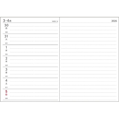 1週間+横罫。