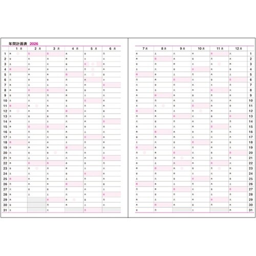 厚みがなくコンパクトな製本形式の糸かかりとじの見開き1週間ダイアリーです。 |