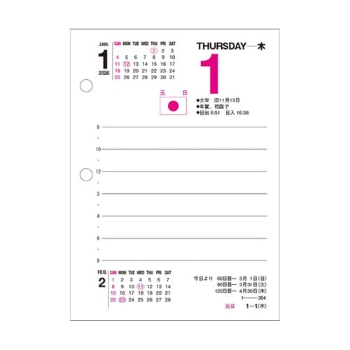 2026 卓上日記 替紙 D−101 1冊 A09J-1411