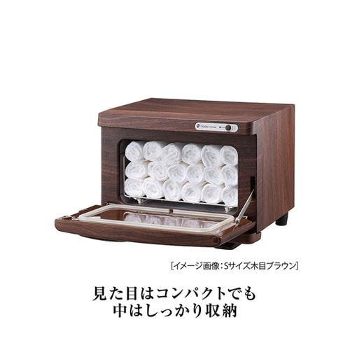 置き場所を選ばない、コンパクトなタオルウォーマー ホットメイトS見た目はコンパクトでも、中はしっかり収納できます。フェイシャルタオル10本、おしぼり35本をしっかりと収納できるタオルウォーマー。 |