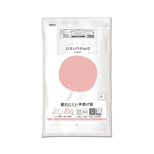 オルディ asunowa 破れにくい手提げ袋 ブロックタイプ 2L/45号 乳白 100P 1ケース(100枚×15冊入) ASW−HW45YNT−100 1ケース A09J-1586