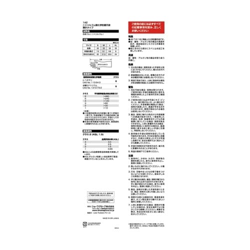 142ニトリルゴム製化学防護手袋 薄手タ