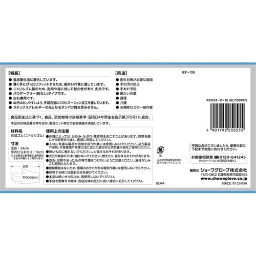 食品衛生法に適合しています。薄く手にぴったりフィットするため、細かい作業に適しています。ニトリルゴム製のため、洗剤や油に対して耐久性があり、丈夫です。パウダーフリー(粉なし)タイプです。左右兼用です。 |