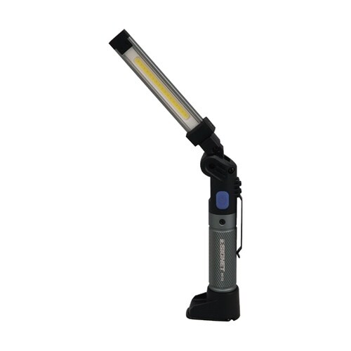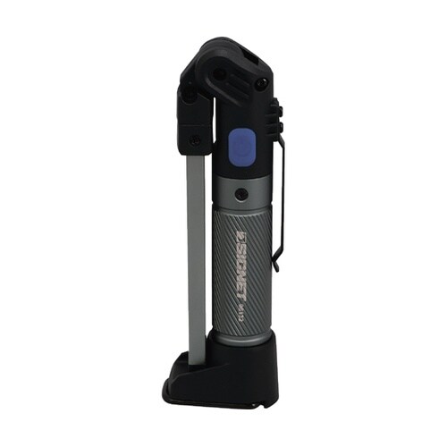 トップライトとメインライトの2WAYです。折りたたみ式でライト部は180°回転できます。メインライトは長押しで調光機能で、またSOS用の赤色灯機能付きです。 |